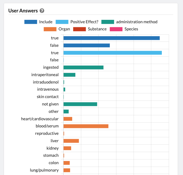User Answers gives you a visual overview of how label answers have been applied across your project by all human reviewers. It’s a quick way to explore filtered sets of articles. Just click on any bar in the User Answers chart to see the list of articles with that specific label.