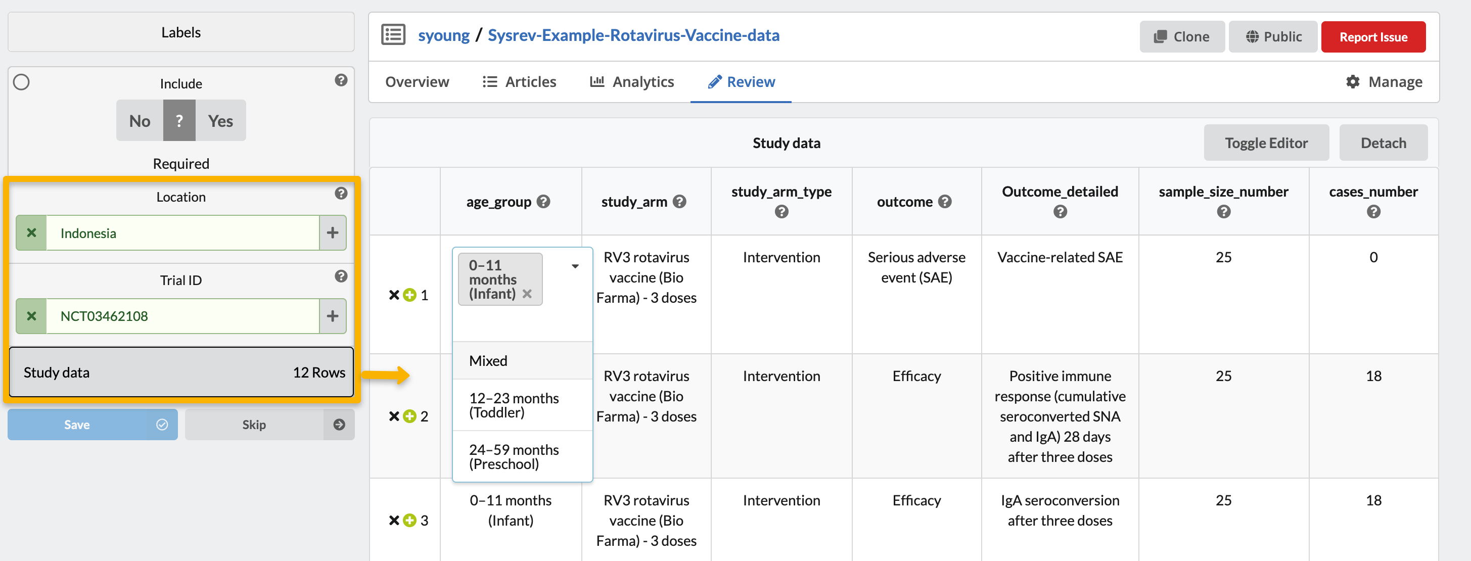 You can then make edits to the prefilled answers or add additional information. When satisfied with the label answers click Save. This will save all of the label answers as the human reviewer's labels. However, the original Auto-labeler answers will be preserved and are visible below the article window and in the exported project data.